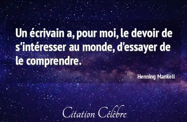 Un écrivain a, pour moi, le devoir de s'intéresser au monde, d'essayer de le comprendre.