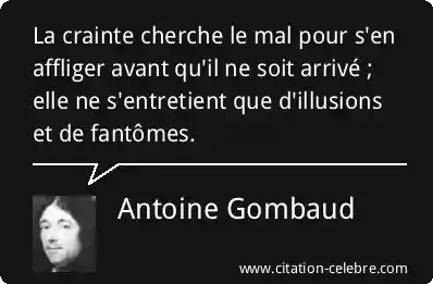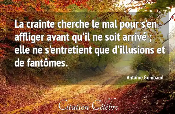 La crainte cherche le mal pour s'en affliger avant qu'il ne soit arrivé ; elle ne s'entretient que d'illusions et de fantômes.