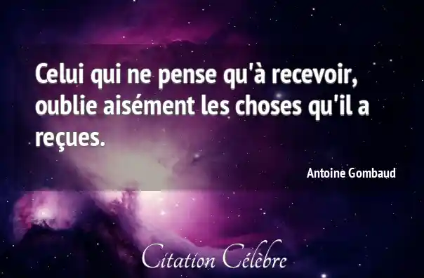 Celui qui ne pense qu'à recevoir, oublie aisément les choses qu'il a reçues.