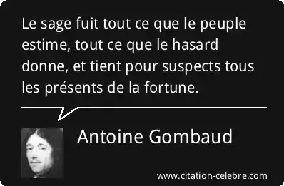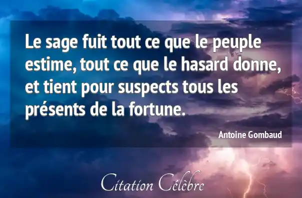 Le sage fuit tout ce que le peuple estime, tout ce que le hasard donne, et tient pour suspects tous les présents de la fortune.