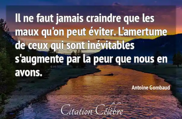 Il ne faut jamais craindre que les maux qu'on peut éviter. L'amertume de ceux qui sont inévitables s'augmente par la peur que nous en avons.
