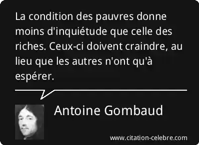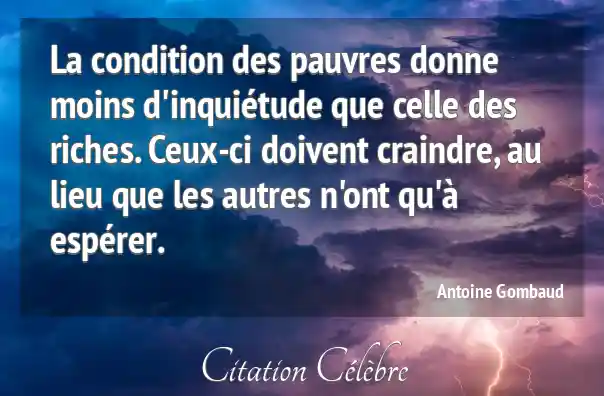 La condition des pauvres donne moins d'inquiétude que celle des riches. Ceux-ci doivent craindre, au lieu que les autres n'ont qu'à espérer.