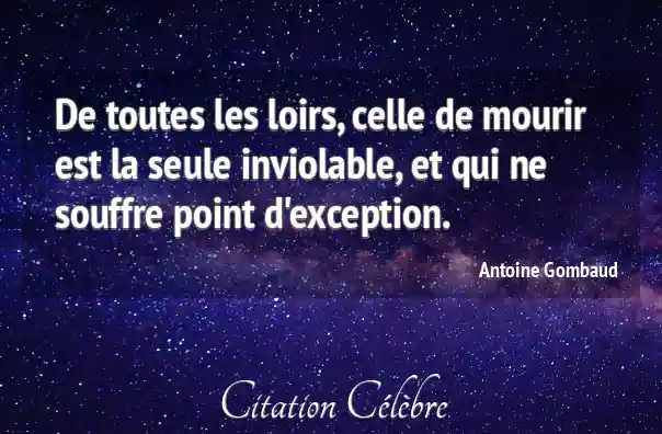 De toutes les loirs, celle de mourir est la seule inviolable, et qui ne souffre point d'exception.