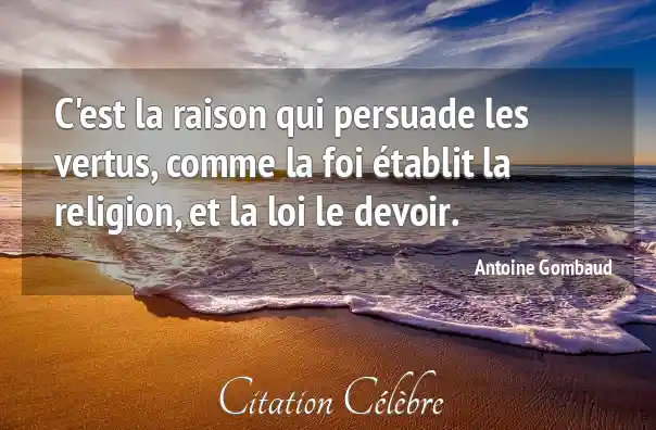 C'est la raison qui persuade les vertus, comme la foi établit la religion, et la loi le devoir.