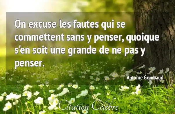 On excuse les fautes qui se commettent sans y penser, quoique s'en soit une grande de ne pas y penser.
