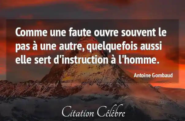 Comme une faute ouvre souvent le pas à une autre, quelquefois aussi elle sert d'instruction à l'homme.