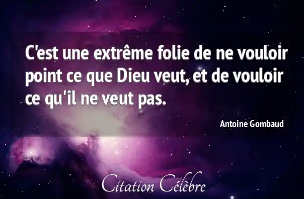 C'est une extrême folie de ne vouloir point ce que Dieu veut, et de vouloir ce qu'il ne veut pas.
