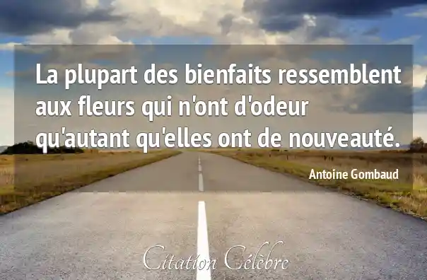 La plupart des bienfaits ressemblent aux fleurs qui n'ont d'odeur qu'autant qu'elles ont de nouveauté.