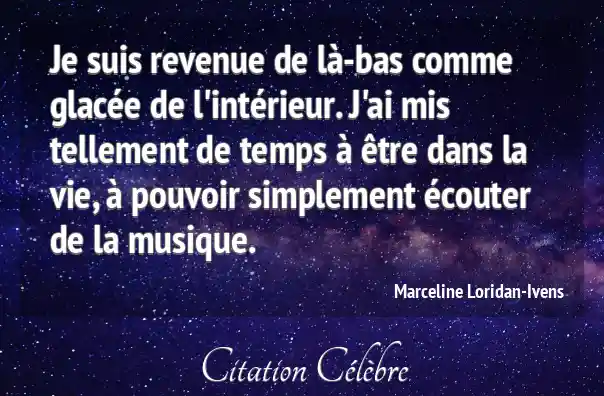 Je suis revenue de là-bas comme glacée de l'intérieur. J'ai mis tellement de temps à être dans la vie, à pouvoir simplement écouter de la musique.