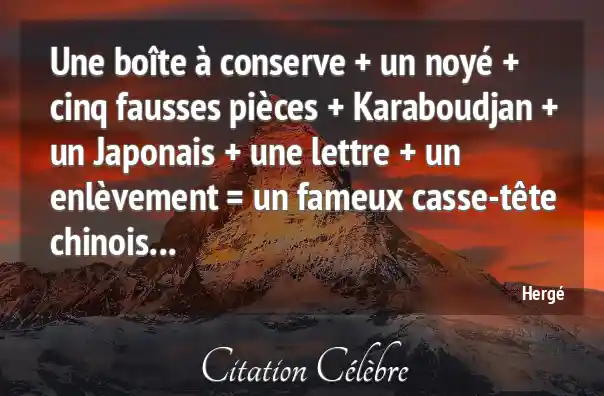 Une boîte à conserve + un noyé + cinq fausses pièces + Karaboudjan + un Japonais + une lettre + un enlèvement = un fameux casse-tête chinois...