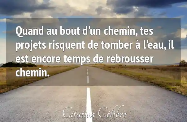 Quand au bout d'un chemin, tes projets risquent de tomber à l'eau, il est encore temps de rebrousser chemin.