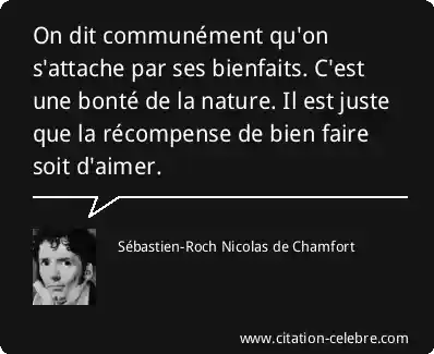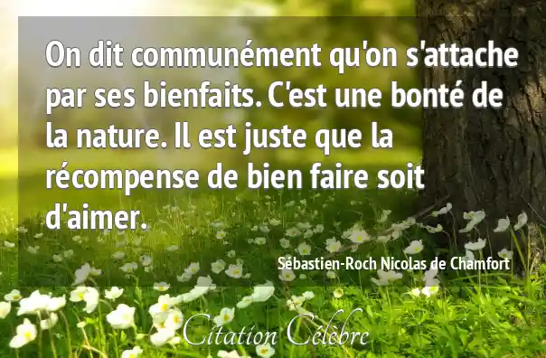 On dit communément qu'on s'attache par ses bienfaits. C'est une bonté de la nature. Il est juste que la récompense de bien faire soit d'aimer.