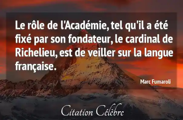 Le rôle de l'Académie, tel qu'il a été fixé par son fondateur, le cardinal de Richelieu, est de veiller sur la langue française.
