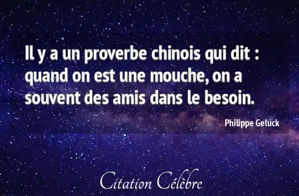 Il y a un proverbe chinois qui dit : quand on est une mouche, on a souvent des amis dans le besoin.