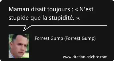 Cette phrase, prononcée par le personnage de Forrest Gump, est attribuée à sa mère. Littéralement, elle signifie que la seule chose qui est véritablement stupide, c'est la stupidité elle-même. Elle établit une distinction entre les actes ou les personnes qui pourraient être jugés "stupides" et la notion intrinsèque de stupidité. En d'autres termes, elle rejette l'idée de juger les autres comme étant stupides, concentrant le jugement uniquement sur le concept abstrait.