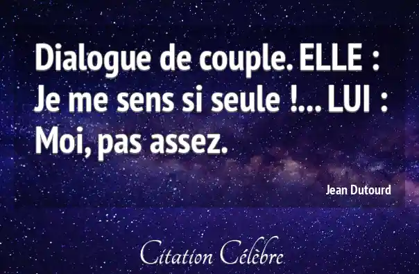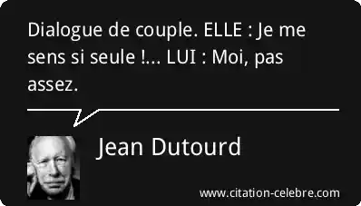 Dialogue de couple. ELLE : Je me sens si seule !... LUI : Moi, pas assez.