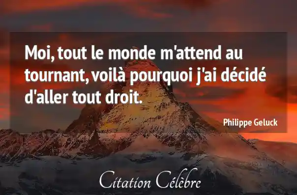 Moi, tout le monde m'attend au tournant, voilà pourquoi j'ai décidé d'aller tout droit.