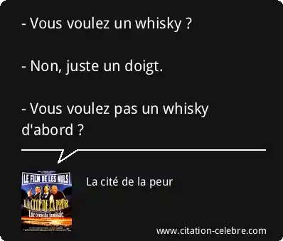 - Vous voulez un whisky ? - Non, juste un doigt. - Vous voulez pas un whisky d'abord ?