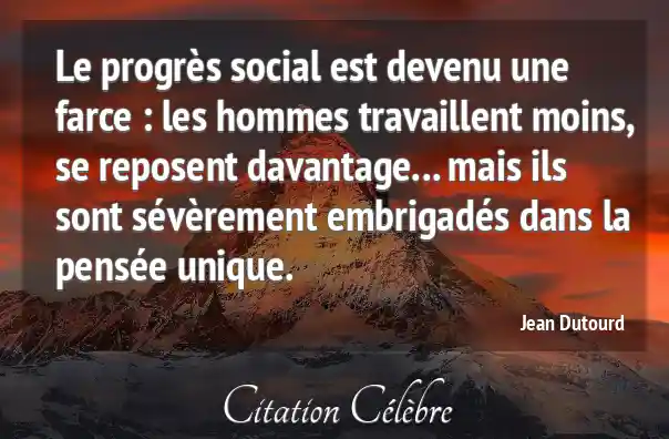 Le progrès social est devenu une farce : les hommes travaillent moins, se reposent davantage... mais ils sont sévèrement embrigadés dans la pensée unique.