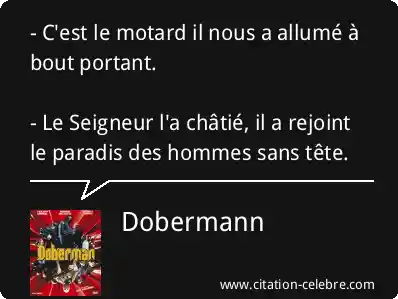 - C'est le motard il nous a allumé à bout portant. - Le Seigneur l'a châtié, il a rejoint le paradis des hommes sans tête.