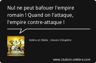 Citation  Astérix et Obélix : mission Cléopâtre nul : Nul ne peut bafouer l'empire romain ! Quand on l'attaque, l'empire... (Caius Céplus - film & série)