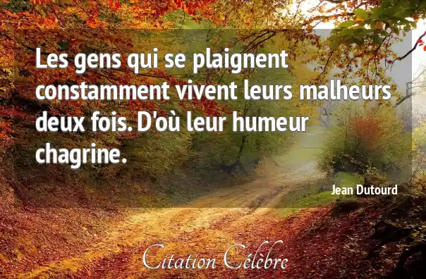 Les gens qui se plaignent constamment vivent leurs malheurs deux fois. D'où leur humeur chagrine.