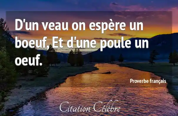 Proverbe  Français Oeuf : D'un veau on espère un boeuf, Et d'une poule un...