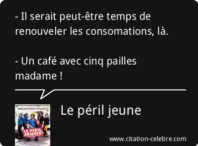 - Il serait peut-être temps de renouveler les consomations, là. - Un café avec cinq pailles madame !