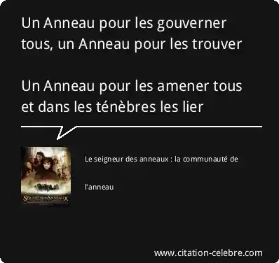 Un Anneau pour les gouverner tous, un Anneau pour les trouver Un Anneau pour les amener tous et dans les ténèbres les lier