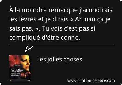À la moindre remarque j'arondirais les lèvres et je dirais « Ah nan ça je sais pas. ». Tu vois c'est pas si compliqué d'être conne.