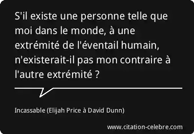 S'il existe une personne telle que moi dans le monde, à une extrémité de l'éventail humain, n'existerait-il pas mon contraire à l'autre extrémité ?