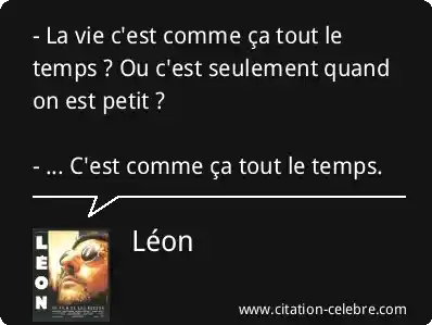 - La vie c'est comme ça tout le temps ? Ou c'est seulement quand on est petit ?