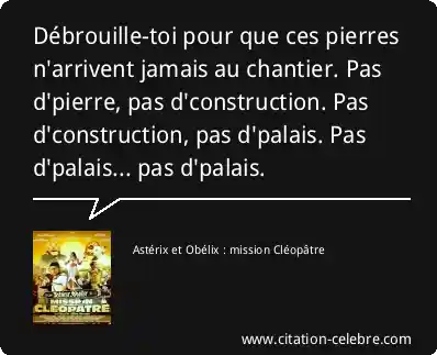 La réplique est extraite du film Astérix Et Obélix : Mission Cléopâtre, sorti en 2002 et réalisé par Alain Chabat. Elle est prononcée par le personnage d'Amonbofis, l'architecte égyptien jaloux et rival de Numérobis, qui cherche à saboter la construction du palais. Elle est caractéristique de l'écriture pleine d'absurde et de répétitions comiques du film.