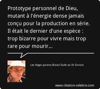 Prototype personnel de Dieu, mutant à l'énergie dense jamais conçu pour la production en série. Il était le dernier d'une espèce : trop bizarre pour vivre mais trop rare pour mourir...