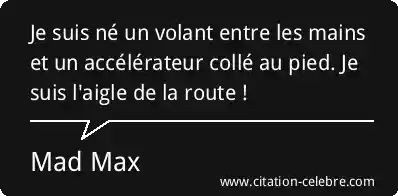 Je suis né un volant entre les mains et un accélérateur collé au pied. Je suis l'aigle de la route !