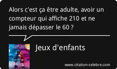 Alors c'est ça être adulte, avoir un compteur qui affiche 210 et ne jamais dépasser le 60 ?
