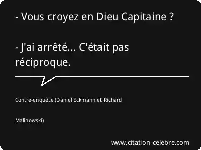 - Vous croyez en Dieu Capitaine ? - J'ai arrêté... C'était pas réciproque.