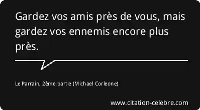 Gardez vos amis près de vous, mais gardez vos ennemis encore plus près.
