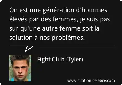 On est une génération d'hommes élevés par des femmes, je suis pas sur qu'une autre femme soit la solution à nos problèmes.