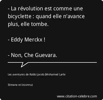 Citation  Les aventures de Rabbi Jacob non : - La révolution est comme une bicyclette : quand elle n'avance... (Mohamed Larbi Slimane et Inconnu - film & série)