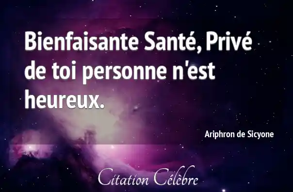 Bienfaisante Santé, Privé de toi personne n'est heureux.