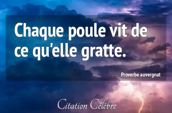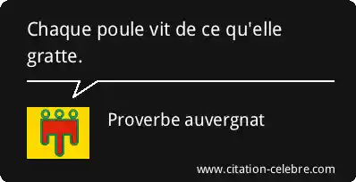 Proverbe  Auvergnat Chaque : Chaque poule vit de ce qu'elle gratte....