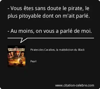 - Vous êtes sans doute le pirate, le plus pitoyable dont on m'ait parlé. - Au moins, on vous a parlé de moi.
