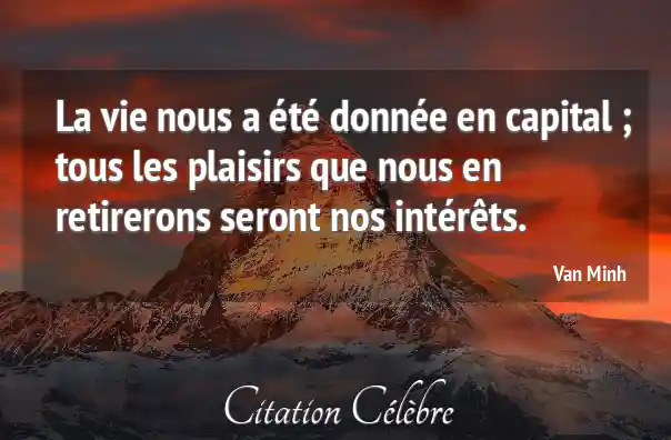 La vie nous a été donnée en capital ; tous les plaisirs que nous en retirerons seront nos intérêts.