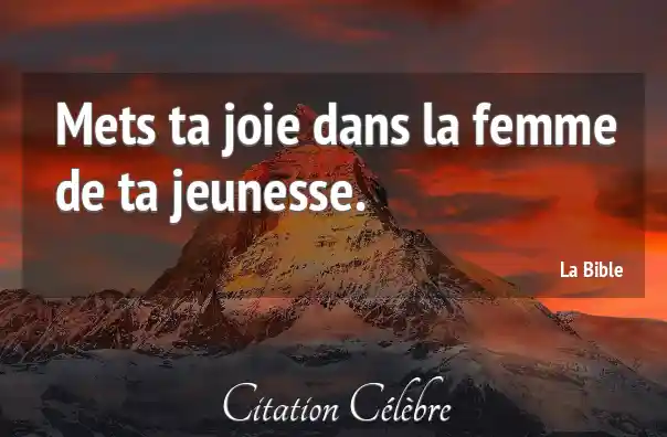 Mets ta joie dans la femme de ta jeunesse.