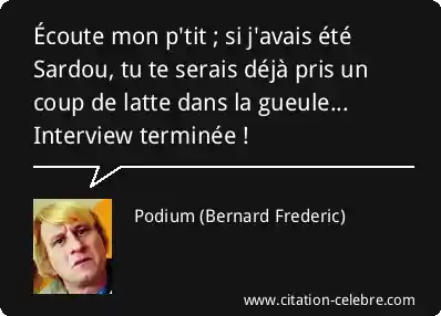 Écoute mon p'tit ; si j'avais été Sardou, tu te serais déjà pris un coup de latte dans la gueule... Interview terminée !