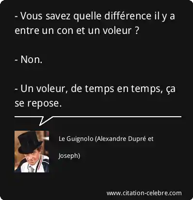 - Vous savez quelle différence il y a entre un con et un voleur ? - Non. - Un voleur, de temps en temps, ça se repose.
