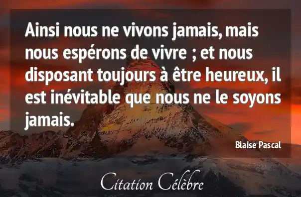 Ainsi nous ne vivons jamais, mais nous espérons de vivre ; et nous disposant toujours à être heureux, il est inévitable que nous ne le soyons jamais.
