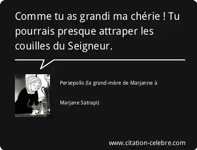 Comme tu as grandi ma chérie ! Tu pourrais presque attraper les couilles du Seigneur.