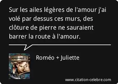 Sur les ailes légères de l'amour j'ai volé par dessus ces murs, des clôture de pierre ne sauraient barrer la route à l'amour.